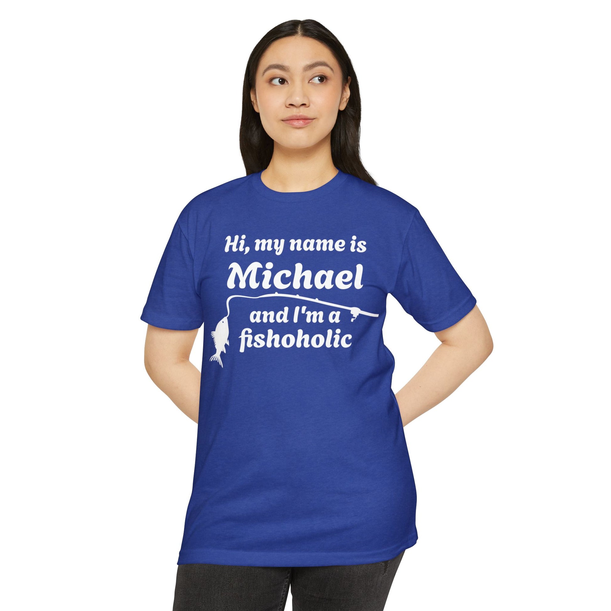Hi, my name is [YOUR NAME] and I’m a fishoholic — Unisex Cotton-Poly Blend T-Shirt (Customizable)