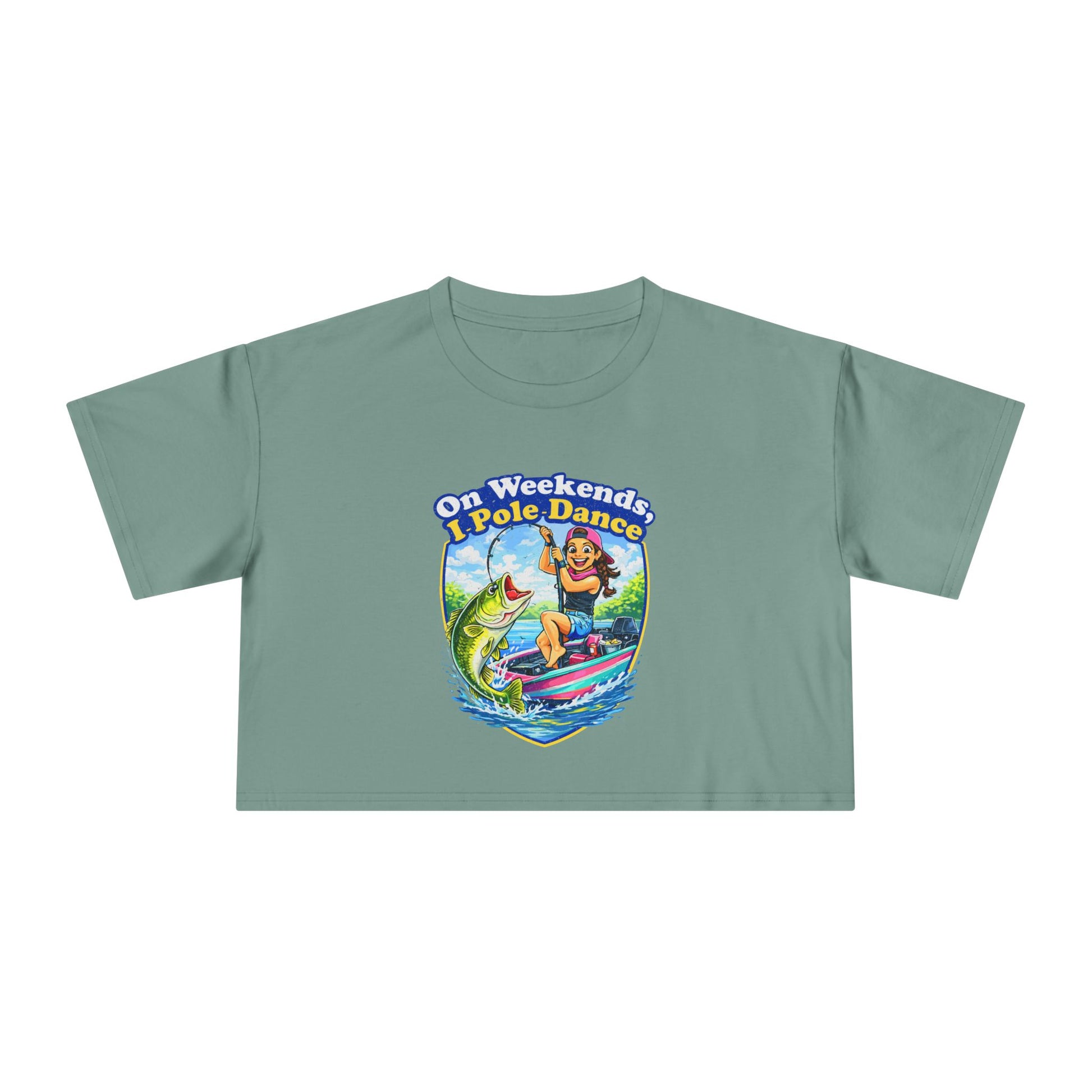 The “On Weekends, I Pole Dance” crop tee brings playful energy to your summer lineup. It’s flirty, funny, and guaranteed to spark a second look before the punchline lands. Around here, pole dancing means early mornings, tight lines, and a solid hookset.